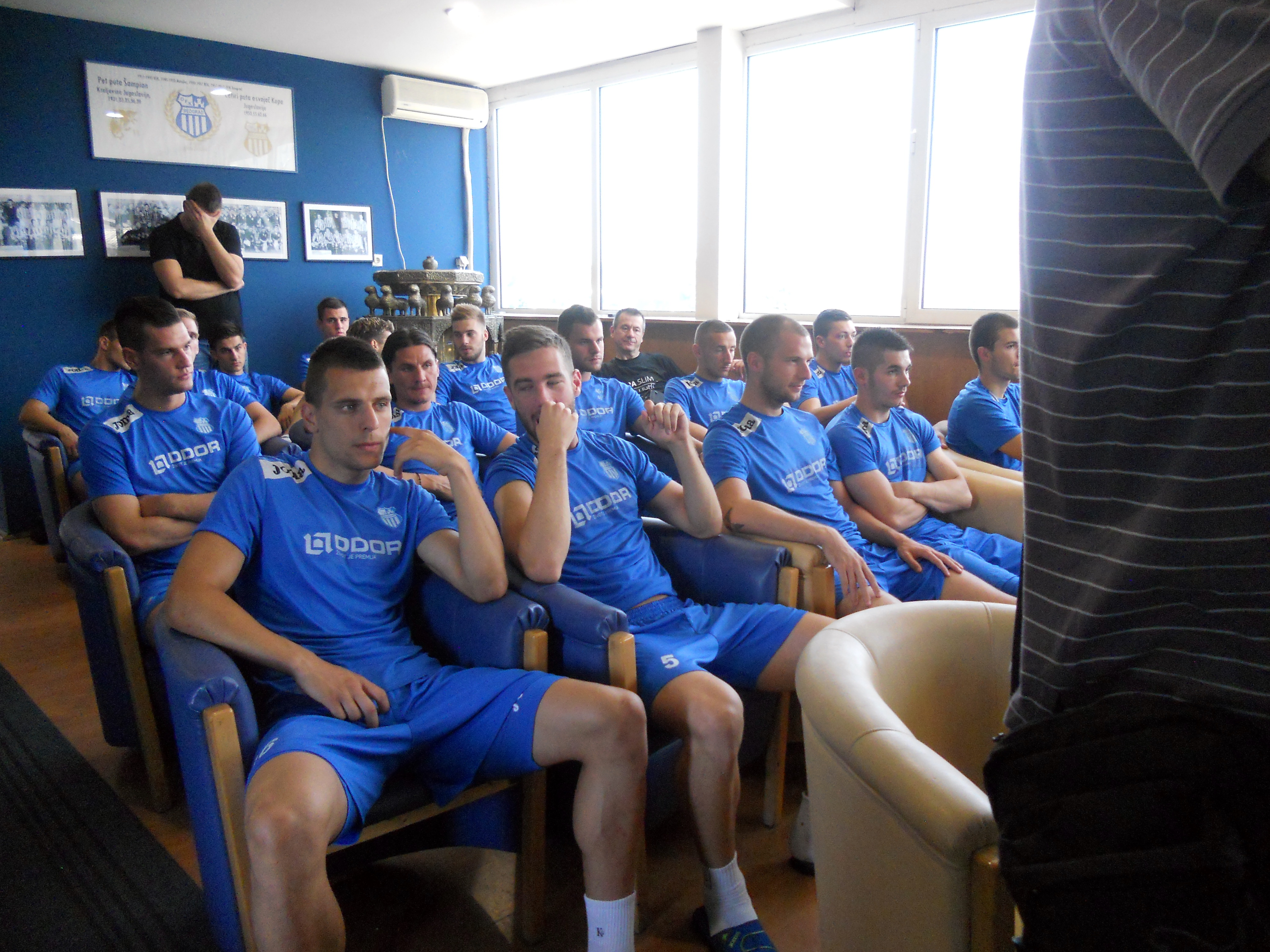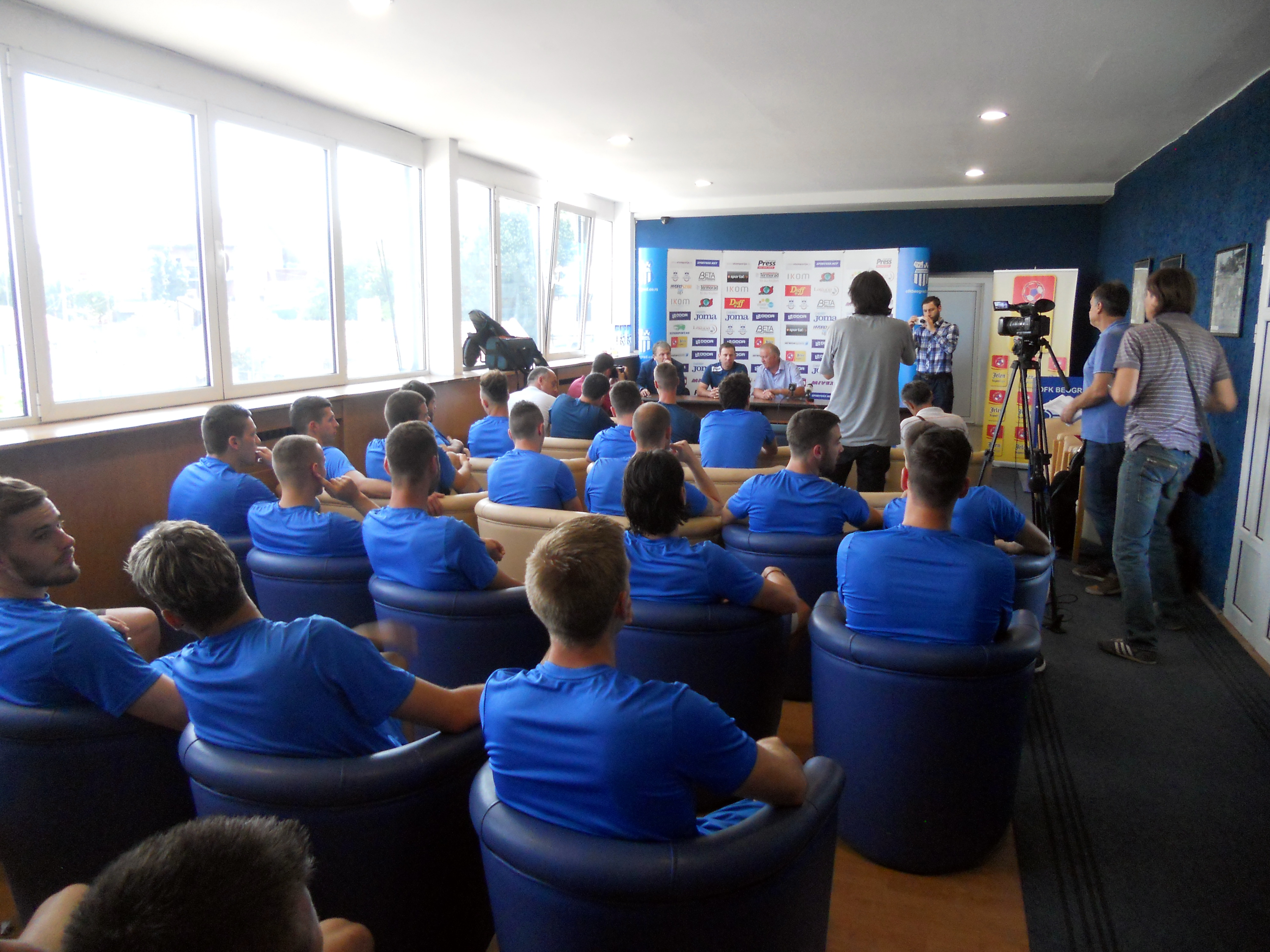 ИГРАЧИМА СУ СЕ У 10 САТИ, У ПРЕСС САЛИ ОМЛАДИНСКОГ СТАДИОНА, ОБРАТИЛИ ЧЛАНОВИ УПРАВЕ КЛУБА, ДРАКЧЕ ДИМИТРИЈЕВИЋ, АЛЕКСАНДАР ПИВИЋ И НОВАК РАШИЋ, КОЈИ СУ ПОЖЕЛЕЛИ ДОБРО ЗДРАВЉЕ И ВРЕДАН И УСПЕШАН РАД НАШИМ ПРВОТИМЦИМА, КАО И ДЕЈАН ЂУРЂЕВИЋ КОЈИ ЈЕ ПРЕДСТАВИО ПЛАН ПРИПРЕМА.
